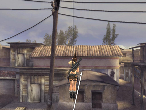 Then run out across the roof to the back corner. When Lara is standing there, the neighboring building shields her from the 2 shooters farther along the street (one on the ground, one above), while allowing you to target the man (or 2 men) on roof across the street. Once you've dealt with them, move onto the peak of the roof to target the remaining enemies.