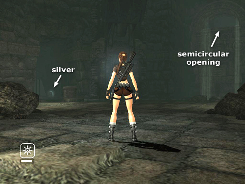 NOTE: If you missed silver reward #2 here before, you can get it now. It's in the side passage just to the left of the elevated semicircular opening where you originally entered this area. (screenshot)