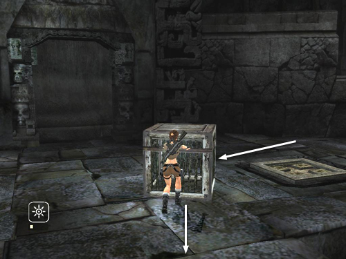 Once the first cage is up on the ledge, climb up and move the cage past the nearest pressure pad. . .