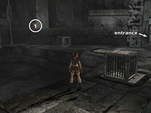 The second cage you'll use is already on the upper level; it's against the back wall, on the left when facing the entrance. Go past it and climb into the alcove next to the vertical chain to find a bronze reward (10/10).