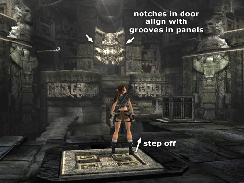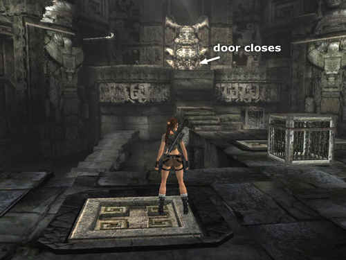 NOTE: If the door opens too far, you won't be able to reach the gold reward in the alcove above the exit, so you'll have to start over: Close the door again by dragging the cage off the center pad and stepping on the left pad. Then repeat the steps above, pushing the cage onto the center pad and standing on the left pad just until the door is positioned correctly. [Part 2 | Part 4 | Return to the Bolivia Walkthrough] Copyright © 2006- - Stellalune (). All rights reserved. The screenshots and videos included here were made using Fraps. Feel free to copy or print this walkthrough for personal use. By all means, share it with friends, but please include this credit line so people can send me their feedback. No part of this walkthrough may be reproduced on another site without permission. Follow this link for details about this site's advertising and privacy policy. |