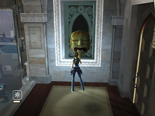 The switch panels also rotate again, revealing a set of carved plaques with another clue. Again, press Interact to make Lara read it aloud: "The risen Athena turns to face the sun, whose burden then reveals the golden laurel."