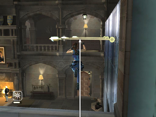 NOTE: You can cross the bars more quickly by jumping before Lara swings all the way around. This is a little tricky, though. You'll need to press Jump just a fraction of a second after Lara grabs each bar.