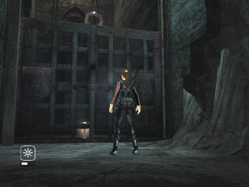When the cut scene ends, a bronze cross is clearly visible behind the portcullis ahead.
