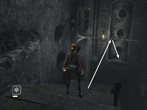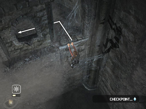 IMPORTANT: The way the next checkpoint is positioned relative to the nearby reward is problematic. The checkpoint registers just before you get bronze #6. If Lara subsequently dies, the game reloads at checkpoint 7, placing her in a position where you can no longer get that reward. It's probably a good idea to save manually after checkpoint 6. Then if Lara dies anywhere in this room, reload the checkpoint 6 save, get all three bronze rewards (4-6) again and continue to checkpoint 8 before saving again. If you're playing the PC game and have already run into this problem, you're welcome to download my savegame file from checkpoint 8. Instructions for downloading and installing Legend saves are here.