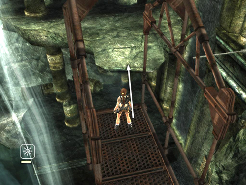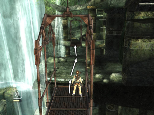 From CHECKPOINT 15 jump onto the suspended platform and ride it down to a lower level.