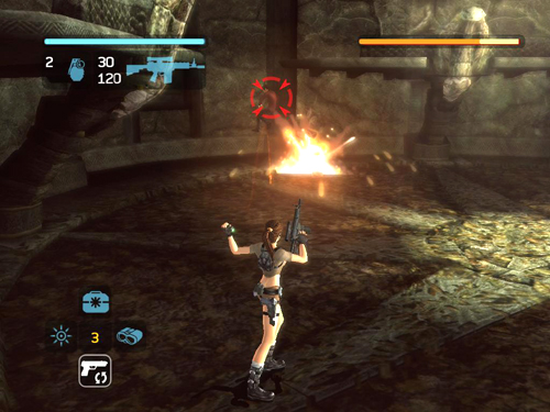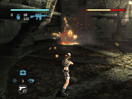 NOTE: If you're playing on the Hard (Tomb Raider) difficulty setting, be sure to equip the grenade launcher as your secondary weapon for this fight. Then, when you run out of hand grenades, you'll still have enough firepower to bring Rutland down before he has a chance to heal himself. Special thanks to Treeble, who I believe discovered this excellent strategy, and to Robert, who first brought it to my attention. [Return to the Ghana Walkthrough] Copyright © 2006- - Stellalune (). All rights reserved. The screenshots and videos included here were made using Fraps. Feel free to copy or print this walkthrough for personal use. By all means, share it with friends, but please include this credit line so people can send me their feedback. No part of this walkthrough may be reproduced on another site without permission. Follow this link for details about this site's advertising and privacy policy. |