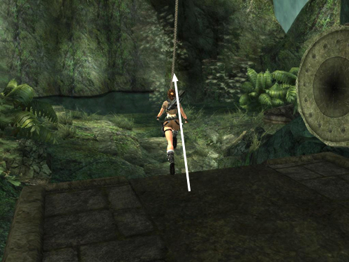 Climb almost to the top of the rope and turn so the open drawbridge is on Lara's right.