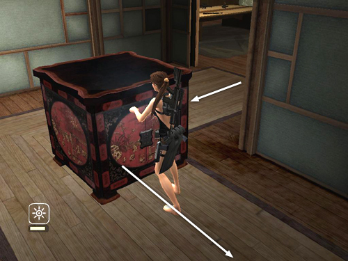 This sequence is also shown in a gameplay video. After smashing the window with the dragon statue, as described in the previous set of screenshots, climb up into the opening and follow the hallway to the small room at the end.