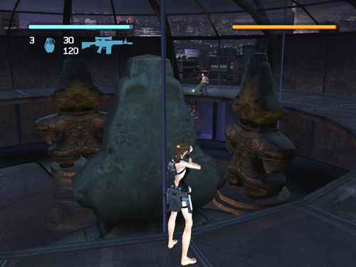 Firing continuously while running to the next statue and back should use up about one clip of ammo. Release the target lock button as you wait behind the statue so Lara will reload. Then repeat the process. If Takamoto moves, run to the statue opposite where he ends up and start the process again. Repeat this until he is dead. He will continue to fire energy blasts at Lara as she runs, but as long as you keep moving, Lara should lose very little health. (Thanks to Anton B. for this tip.) [Aggro Strategy | Part 2 | Return to Japan Walkthrough] Copyright © 2006- - Stellalune (). All rights reserved. The screenshots and videos included here were made using Fraps. Feel free to copy or print this walkthrough for personal use. By all means, share it with friends, but please include this credit line so people can send me their feedback. No part of this walkthrough may be reproduced on another site without permission. Follow this link for details about this site's advertising and privacy policy. |