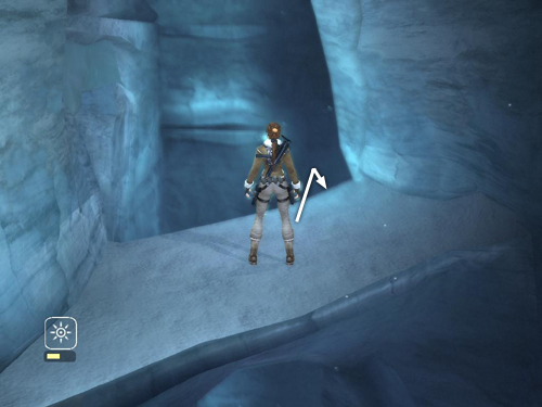 Then jump to grab a break-away ledge on the wall way off to the right. Traverse quickly to the right (tap Interact to go faster) and jump straight up to grab the ledge above before your handhold collapses completely. Pull up into the opening.