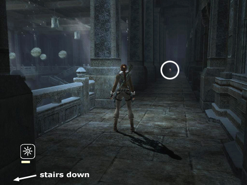 Before tackling the balance-and-blocks puzzle, go after the last two rewards. There's a staircase leading up on each side of the platform with the statue. On each balcony, there's a bronze reward (8/9 and 9/9).