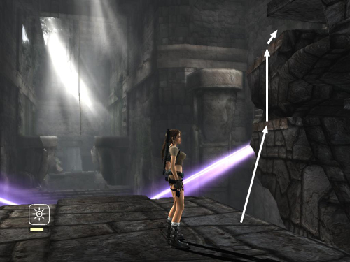 From CHECKPOINT 18 on the center ledge overlooking the room, jump to grab the handhold on the right. Jump straight up to grab the top of the ledge and pull up.