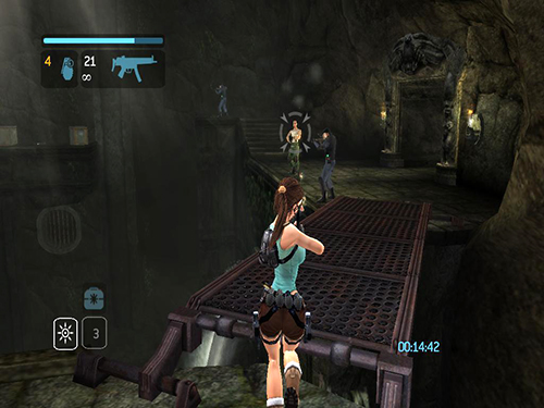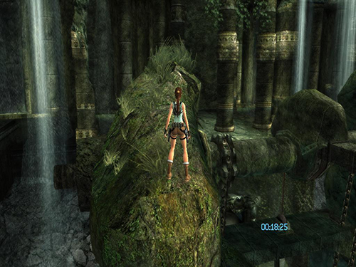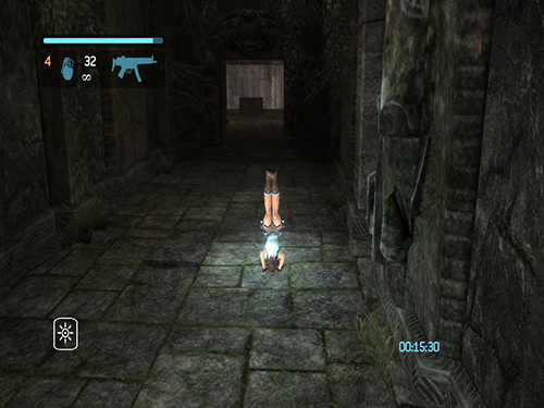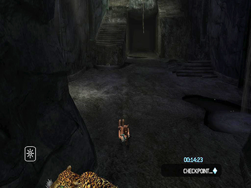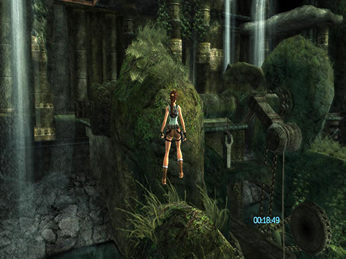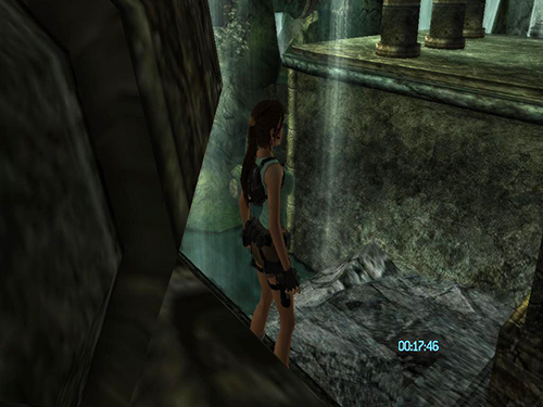 In the area with the cistern and sluice gate, do the pressure pad sequence as described in the main walkthrough, but when you come to the part where you use the grapple to pull out the sun symbol, pull just until the symbol starts to extend. Before the cut scene starts, release the cable and jump/dive off the ledge. Lara will die, but CHECKPOINT 11 should register before she does, and the game will reload, placing her at the grate beyond the flooded room. At this point, do not turn around. Instead draw pistols and start firing. While shooting, do a backward roll (Back + Duck) and Lara will fall back and grab the ledge at the bottom. This is much faster than climbing down the ladder and ledges. (Thanks to Nick for these tips.)