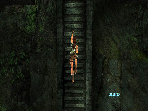 Swan dive down the stairs and Lara will reach the bottom in 2 seconds.