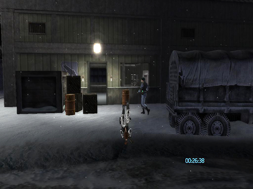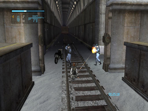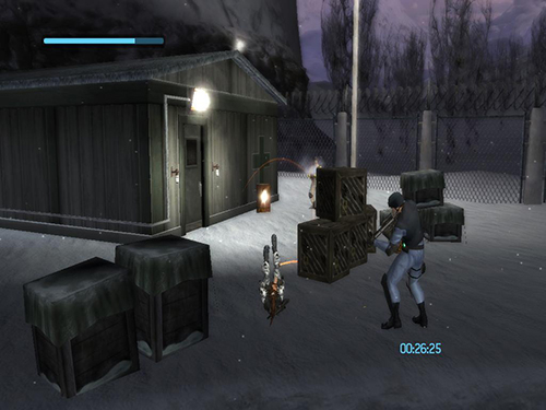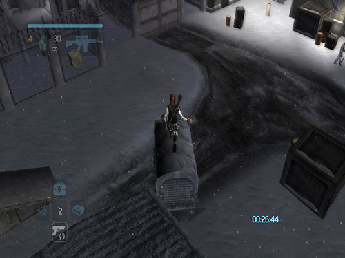 For this level it helps to have unlocked the unlimited ammo cheat for at least one weapon. You can avoid many of the enemies in this level, but you will have to fight some of them. The ammo cheats help. If you are playing the Time Trials in order, you'll now have unlimited ammo for the SMG, Assault Rifle and Shotgun. Take the one you like the best or along the way you can switch between weapons; it is your choice.