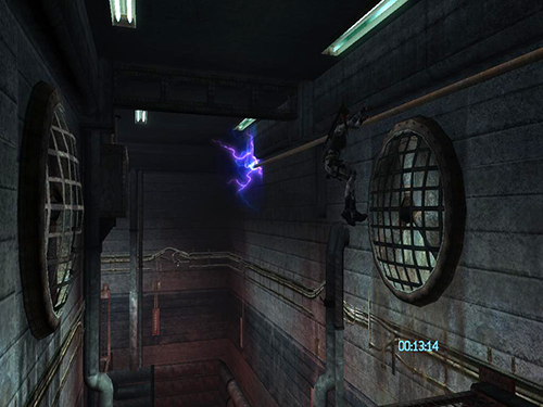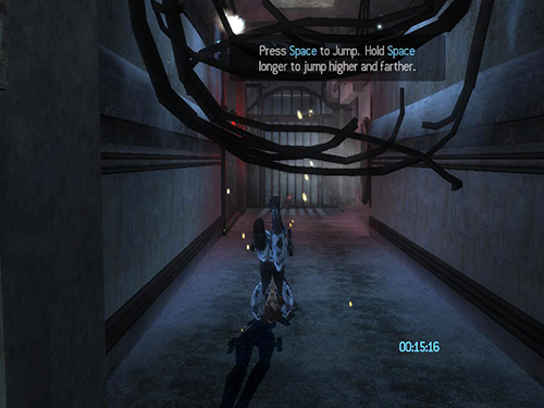 Roll or "Swan Dive Jump" through linear areas like the beginning of the ventilation ducts.