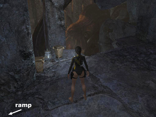 NOTE: It's possible for Lara to fall into this pit and live. So be careful here. If this does happen, just save the game manually and reload at the previous checkpoint.