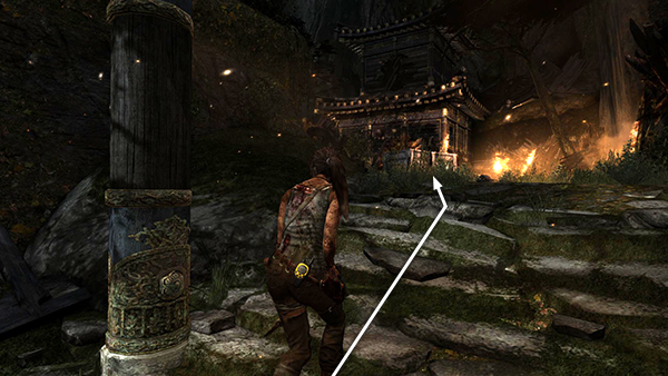 OUTSIDE THE BURNING BUILDING: The zip line deposits Lara at the base of a long set of stairs. That's the way to the exit, but if you want all the collectibles, you'll need to explore a bit more before you go.
