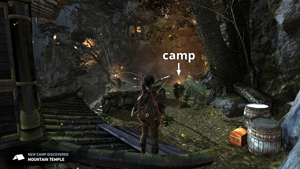 When you rest at this camp, you'll unlock the ability to Fast Travel between camps you've visited earlier (i.e., the fast travel camps represented by the tent icon, not the day camps, which have the campfire icon). You also unlock an entry in Lara's Journal (2/10). You may also have collected enough salvage for another weapon upgrade. If not, you should get it soon. At that time, return to this camp to improve your bow or pistol.
