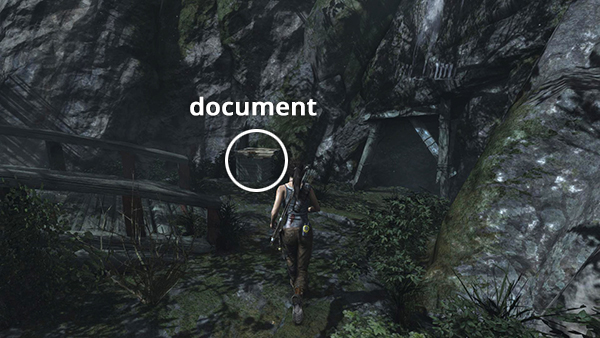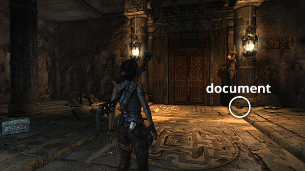 Unlike most documents, this one is not actually discovered in book form; rather, you receive it automatically during the cut scene in the ancient tomb. See here for details. You can't miss it, but for the sake of completion, I've noted it as document #3 on the level map. (Click screenshot to enlarge.)