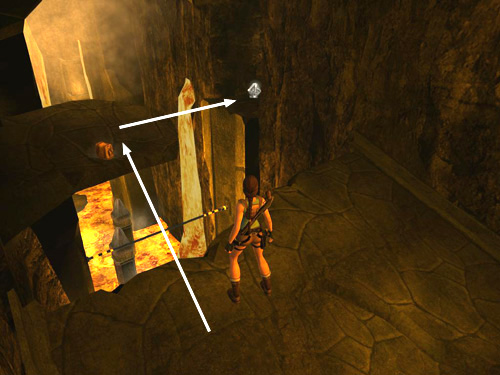 Turn left and approach the edge of the ledge overlooking the lava pool you just came across. Take a running jump to the ledge jutting out of the left wall, where you'll find another large medipack. Turn right and take another running jump across the gap to the ledge with ARTIFACT #4.