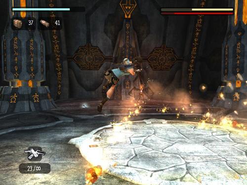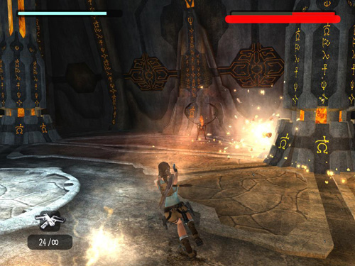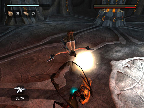 Strategy for fighting both of Natla's forms is detailed in the walkthrough for the level. These screenshots show how to perform the adrenaline dodge during the second phase of the fight. The entire sequence is also shown in this video walkthrough. Note that I used screenshots from several different battles in order to cover everything. So you may notice that the ammo counts, health status and positioning aren't necessarily sequential from one shot to the next.