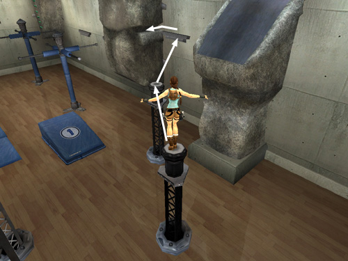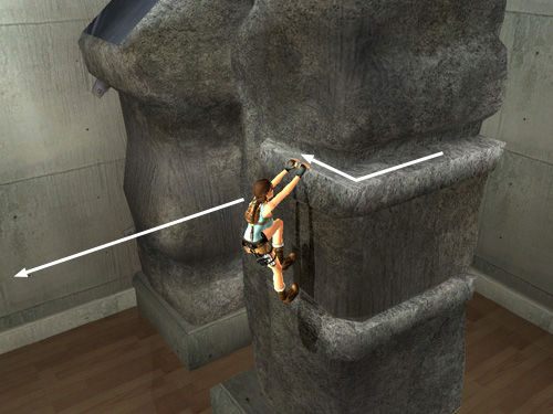 Climb around to the left. Move the camera behind Lara if necessary and then jump back . . .
