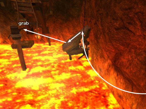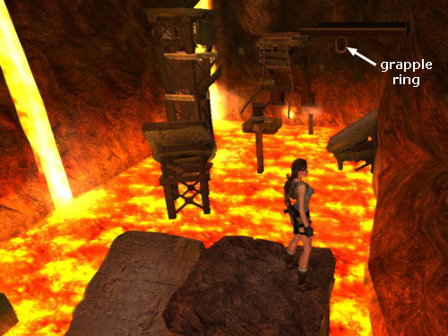 Adjust the length of the cable if necessary so Lara is hanging a few feet above the lava (as shown above).