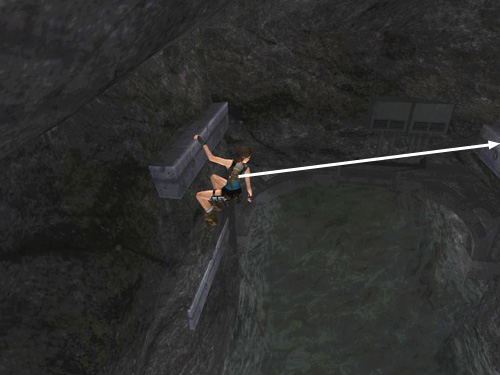 Jump back to grab the handhold on the opposite cave wall.