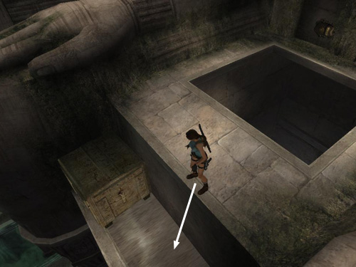 The entire subterranean pool sequence is also shown in this video walkthrough. After solving the SECOND METAL SCARAB PUZZLE and opening the gate above, do not climb up and pull the switch to raise the water level. Instead turn to face out over the pool.