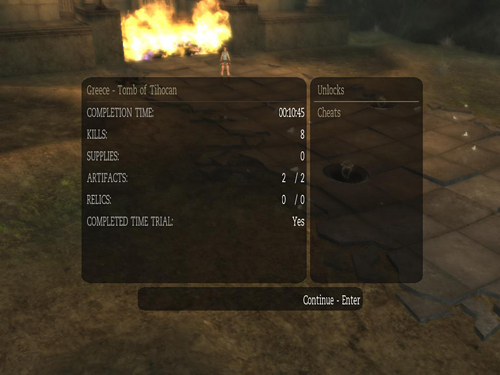 If you've been doing the time trials in order, the best weapon to use here is the Dual 50 Caliber Pistols, and you should have unlocked the cheat for infinite 50-caliber ammo. Turn it on. You know the strategy here. Just stay focused, use a medpack or two if necessary, and don't let the centaurs turn Lara into stone because that way you will lose time.