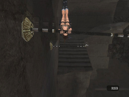 From here, you can drop Lara in front of the hallway without going down slowly. She will take a little damage, but that is the price for some extra time. Don't bother with the switch. Just go directly into the hall.