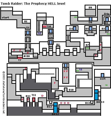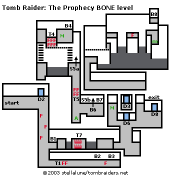 B#/S# - button/switch D# - door F/D - hazard (flame/dart trap, etc.)