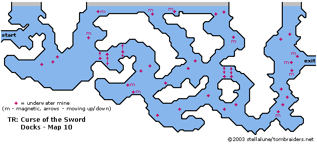 There is no walkthrough for this level either. Refer to the map if you want to. Make your way to the right, through the underwater mines, to the ship. When you reach the far right, the level ends.