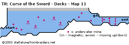 The mini-sub controls are the same as for Lara swimming. You have unlimited air, but Lara will take damage inside the sub if you hit a mine. Use medipaks as usual to restore health.