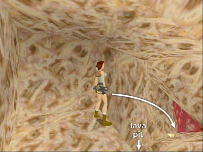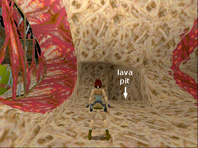 When you enter the room with the webbed window on the left, go straight forward toward the small, square lava pit near the wall.